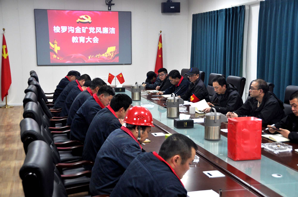 梭羅溝金礦黨支部黨風(fēng)廉潔教育大會(huì)現(xiàn)場(chǎng)