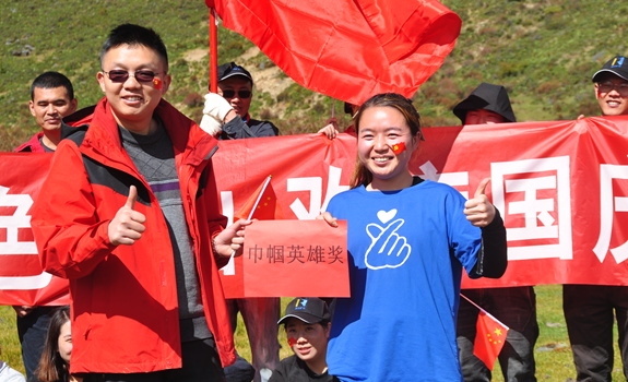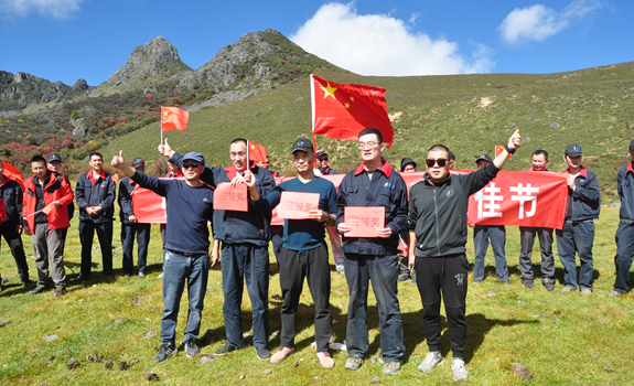 登山團建活動在迎風(fēng)飄揚的五星紅旗下,在參加活動人員《歌唱祖國》的嘹亮歌聲中達到高潮,大家滿懷激情祝福偉大祖國母親的生日,祝愿祖國繁榮富強!